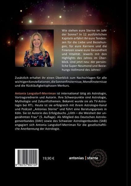 Das große Jahreshoroskop 2024Wie stehen eure Sterne im Jahr der Sonne? In 12 zwölf ausführlichen Kapiteln erfahrt ihr eure Tendenzen für die Liebe und Beziehungen, für eure Karriere und die Finanzen sowie eure Gesundheit und Vitalität. Jeweils mit den Highlights des Jahres im Überblick. Und, jetzt neu: der persönliche Super-Neumond und Beziehungs-Vollmond des Jahres! Zusätzlich erhaltet ihr einen Überblick zum Nachschlagen für alle wichtigen Konstellationen, die Sonnenfinsternisse, Mondfinsternisse und die Rückläufigkeitsphasen Merkurs.