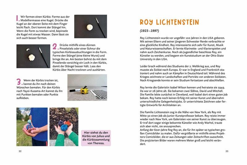 Valentina Eckel, Mutter von drei Kindern, stellt in diesem Buch auf anschauliche und kindgemäße Weise berühmte Künstler:innen und ihre Werke vor und ermuntert Kinder, gleich selbst kreativ zu werden: Neben Ausmalseiten bietet das Buch viele fantasievolle Anleitungen zum Basteln. Wie wäre es zum Beispiel mit Sprühschablonen à la Banksy oder Ballonkreationen nach Jeff Koons - oder mit einer bunten Collage wie die von Frida Kahlo? Mit Videoanleitungen und vielen Fotos!