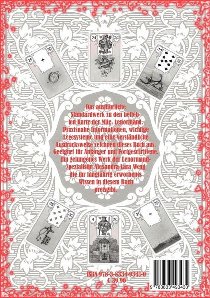 Das ausführliche Standardwerk zu den beliebten Karten der Mlle. Lenormand. Praxisnahe Informationen, wichtige Legesysteme und eine verständliche Ausdrucksweise zeichnen dieses Buch aus. Anfänger lernen mit diesem Buch das Kartenlegen, aber auch fortgeschrittenen Lesern bietet es interessante Informationen. Besondere Aufmerksamkeit wird dem großen Blatt gewidmet, bei dem alle 36 Karten ausgelegt werden. Ziel des Buches ist es, dieses System in allen Einzelheiten zu deuten. Als Hilfe werden alle Kombinationen der Karten aufgeführt. Ein gelungenes Werk der Lenormand-Spezialistin Alexandra Lara Weng, die ihr langjährig erworbenes Wissen in diesem Buch preisgibt.