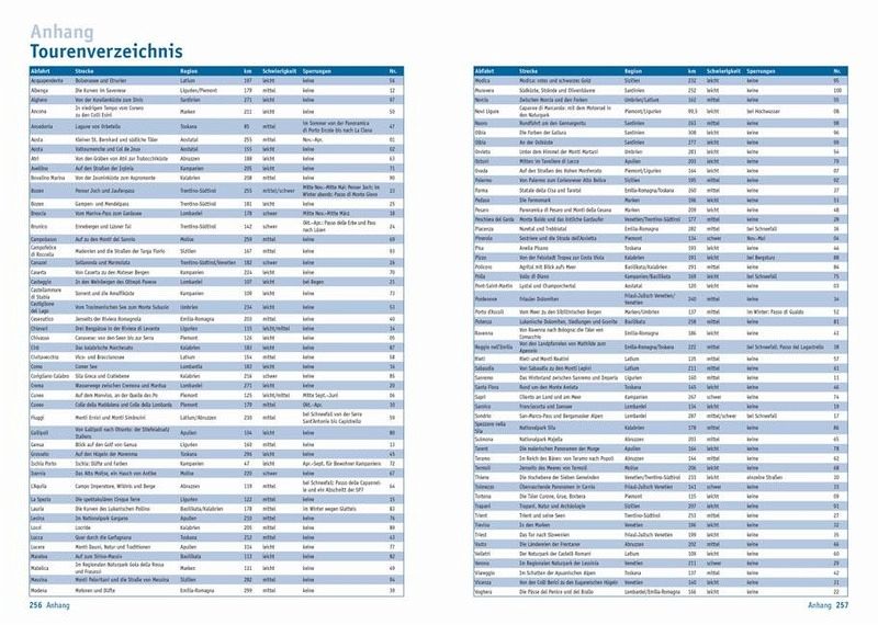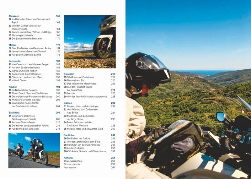 Italien ist und bleibt wohl als eine der beliebtesten Destinationen für den tourenden Motorradfahrer. Von den Alpenhöhen des Aostatals bis zu den herrlichen Küsten Siziliens hat die Autorin - Italienerin und selbst eine begeisterte Motorradfahrerin - die 100 schönsten Touren zusammengetragen. Entdecken Sie auf ihrer Route kleine, abgelegene Dörfer, herrliche Burgen und wunderschöne Schlösser. Auch die Freude am Kurvenfahren wird garantiert nicht zu kurz kommen.
