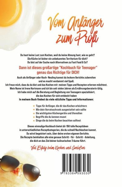 "Das große Kochbuch für Teenager" ist das ideale Werk für alle jungen Kochbegeisterten, die sich von Fast Food und Fertiggerichten lösen und in die spannende Welt des Kochens eintauchen wollen. Wenn du bisher wenig Erfahrung in der Küche gesammelt hast und nach gesunden, leckeren Alternativen suchst, ist dieses Buch dein perfekter Begleiter.Geleitet von Irene Hartmann, einer renommierten Ernährungsberaterin mit Fokus auf jugendliche Kochanfänger, wirst du durch die Grundlagen des Kochens geführt. Sie zeigt dir, wie einfach und unterhaltsam Kochen sein kann, selbst wenn du bisher wenig oder gar keine Erfahrung hast.In diesem Buch findest du alles, was du als Kochneuling wissen musst. Irene Hartmann gibt dir wertvolle Einblicke in die Grundausstattung deines Vorratsschranks, erläutert die notwendigen Küchengeräte und Utensilien und erklärt die wichtigsten Kochbegriffe. Außerdem erhältst du hilfreiche Tipps und Tricks, die das Kochen zum Kinderspiel machen.Mit 150 vielfältigen und leckeren Rezeptideen aus verschiedenen Kategorien bist du bestens gerüstet, um schnell und unkompliziert köstliche Gerichte zu zaubern. Jedes Rezept ist mit einer einfachen und klaren Schritt-für-Schritt-Anleitung versehen, die dich zu deinen ersten eigenen Kocherfolgen führt.Die Vorteile dieses Buches liegen klar auf der Hand: Eine breite Palette an Rezepten, die jeden Geschmack treffen, einfache und verständliche Anleitungen ideal für Kochanfänger, köstliche Gerichte, die an Muttis Küche erinnern, und ein ausführlicher Ratgeberteil, der dir das nötige Basiswissen vermittelt. Mit klaren Angaben zu Zubereitungszeiten, Nährwerten und Portionsgrößen bist du bestens ausgestattet, um eine vielfältige Auswahl an Gerichten für jede Gelegenheit zu kochen.Verpasse nicht die Chance, "Das große Kochbuch für Teenager" zu deinem ständigen Küchenbegleiter zu machen. Entdecke die Freude am Kochen und kreiere deine ersten eigenen Gerichte!