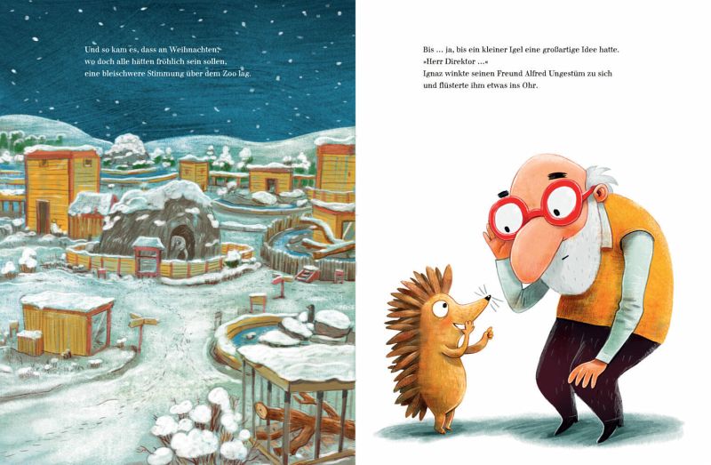 Im Zoo kehrt festliche Stimmung ein, die Weihnachtsvorbereitungen sind fast abgeschlossen. Da erinnert Zoodirektor Ungestüm Igel Ignaz an seine Aufgabe, ein Geschenk für Fräulein Gisela Giraffe zu besorgen. Oweh, das hat Ignaz in der Hektik ganz vergessen.