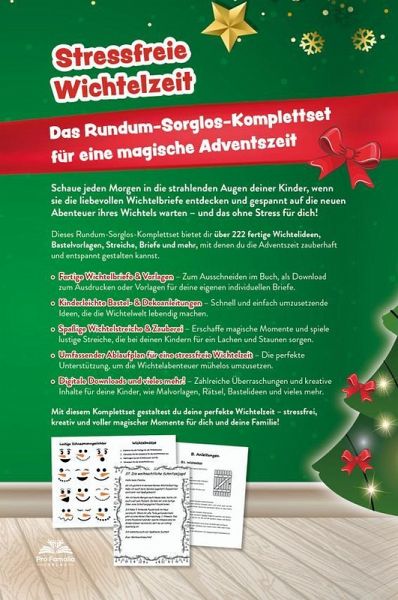 Das große Wichtelspaß Komplettset - Schaffe magische Kindheitserinnerungen, ohne Stress! Kennst du das? Nach einem langen Arbeitstag, wenn die Kinder endlich im Bett sind, bleibt kaum Zeit für aufwendige Wichtelvorbereitungen. Die Sorge, alles perfekt machen zu müssen, ist jedes Jahr wieder da - und die Zeit scheint davonzurennen. Mit dem großen Wichtelspaß Komplettset brauchst du dir keine Gedanken mehr über aufwendige Planungen zu machen. Keine Last-Minute-Hektik mehr. Du kannst deinen Kindern eine Vorweihnachtszeit voller Magie bieten - und das ohne Stress. Mit mehr als 222 Vorlagen und Downloads bekommst du alles, was du brauchst, um die Wichtelzeit schnell und einfach zu gestalten. Was ist im großen Wichtelspaß Komplettset enthalten? -Fertige Wichtelbriefe & Vorlagen - Alle Briefe gibt es zum Ausschneiden im Buch, als Download zum Ausdrucken oder als Word-Vorlage für deine eigenen individuelle Briefe, um die Wichtelzeit ganz persönlich zu gestalten. -Kinderleichte Bastel- & Dekoanleitungen - Schnell und einfach umzusetzende Wichtelideen, die die Wichtelwelt lebendig machen. -Spaßige Wichtelstreiche & Zauberei - Erschaffe magische Momente und spiele lustige Streiche, die bei deinen Kindern für ein Lachen und Staunen sorgen. -Lieder, Geschichten und Rezepte: Verleihe deinem Zuhause noch mehr Weihnachtszauber mit leckeren Rezepten, mit besinnlichen Weihnachtsliedern und Geschichten zum Kuscheln. -Umfassender Ablaufplan für eine stressfreie Wichtelzeit - Alles auf einen Blick. Die perfekte Unterstützung, um die Wichtelabenteuer mühelos umzusetzen. -Flexibler Downloadbereich: Alle Vorlagen im Buch sind auch digital verfügbar - so hast du immer die Freiheit, spontan zu handeln und bist jederzeit vorbereitet. -und vieles mehr! - Zahlreiche Überraschungen und kreative Inhalte für die Kinder als digitale Downloads, wie Malvorlagen, Rätsel, Bastelideen und vieles mehr, die eure Wichtelzeit noch abwechslungsreicher und entspannter machen. Weihnachten ist der Moment im Jahr, in der du deinen Kindern magische Erinnerungen schenken kannst, die für immer bleiben. Mit dem großen Wichtelspaß Komplettset gelingt das ganz ohne Stress und stundenlangen Vorbereitungen. Alles ist fertig, sodass du die gemeinsame Zeit mit deiner Familie genießen kannst - ohne Hektik und Stress. Hol dir jetzt das Wichtelspaß Komplettset und erschaffe nicht nur eine entspannte Weihnachtszeit, sondern auch Erinnerungen, die für immer bleiben.