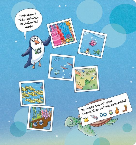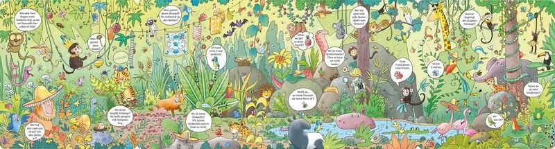 Über 100 lustige Suchaufgaben finden sich auf den 90 cm breiten Panoramaseiten, die von der wimmeligen Unterwasser-Welt über den wilden Dschungel bis in den weiten Weltraum führen.