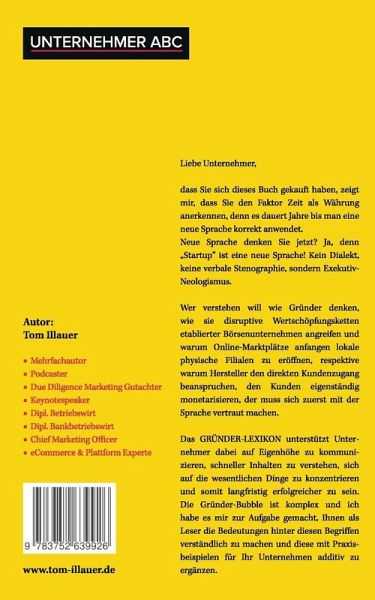 Käufer dieses Buches erkennen die Zeit als Währung an, denn es dauert Jahre bis man eine neue Sprache korrekt anwendet. Neue Sprache? Startup ist eine neue Sprache, kein Dialekt, keine Fremdwörter! Wer verstehen will, wie Gründer denken, der muss sich zuerst mit der Sprache vertraut machen. Das Gründer Lexikon unterstützt Unternehmer dabei auf Augenhöhe zu kommunizieren und schneller Inhalte zu verstehen. Die Gründer Bubble ist komplex und ich habe es mir zur Aufgabe gemacht, Ihnen als Leser die Begriffe verständlich zu machen und diese mit Beispielen für Ihr Unternehmen zu ergänzen.