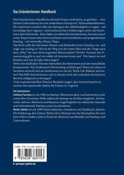 Das Gründerinnen-Handbuch soll mehr Frauen motivieren, zu gründen - vom kleinen Unternehmen bis zum skalierbaren Startup mit Weltmarktambitionen. Die Autorinnen machen Mut, den Sprung in die Selbständigkeit zu wagen - auf Grundlage ihrer eigenen unternehmerischen Erfahrungen sowie des Know-how ihres Netzwerks: Dazu haben sie zahlreiche Startup-Gründerinnen, Investor:innen sowie Expert:innen interviewt und bieten einen fundierten und pragmatischen Einstieg - mit wertvollen Praxis-Tipps. Die vollständigen Interviews gibt's auch in ihrem Podcast "EQUALIZER - von und für Gründerinnen" auf den gängigen Plattformen wie Spotify und Apple Podcasts.Das Buch stellt die relevanten Phasen und Methoden beim Gründen vor und zeigt prägnant, was wichtig ist: Wie ist der Weg von der ersten Idee und der Frage nach dem "Why" bis zum überzeugenden Businessplan? Welche Formen der Finanzierung gibt es und wie wähle ich Investor:innen aus? Wie lassen sie und Kunden sich von der Ideeüberzeugen? Neben den fachlichen Themen beleuchten die Autorinnen auch die menschliche Komponente: Wie funktioniert Networking wirklich gut? Wann im Leben ist Gründen sinnvoll und wie funktioniert es mit der Work-Life-Balance am besten? Was hilft Gründerinnen, sich in diesem noch sehr männlich dominierten Bereich erfolgreich zu bewegen? Viele inspirierende Best-Practice-Beispiele zeigen, dass Unternehmerin zu werden eine spannende Option für Frauen ist. Legt los!Mit wertvollen Tipps von 15 Gründerinnen: Alina Bassi, KleiderlySophie Chung, Qunomedical Dalia Das, neue fische GmbH, School and Pool for Digital TalentStefanie A. Engelhard, Unleash Future Boats Andrea Fernandez, VitaminDr. Joana Gil, LignoPure Daniela Greiffendorf, European Seniors' SchoolLaetitia Hörnler, mamis travelguideChristine Kiefer, RIDE Carolin Kunert, Knister Dr.-Ing. Anne Lamp, traceless materials Katharina Obladen, UVIS UV-Innovative Solutions Miriam Schütt, SofaConcerts Lena Weirauch, ai-omatic solutions Ines Woermann, helloguide