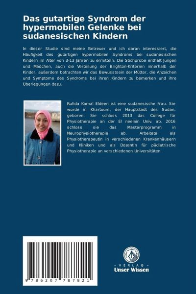 In dieser Studie sind meine Betreuer und ich daran interessiert, die Häufigkeit des gutartigen hypermobilen Syndroms bei sudanesischen Kindern im Alter von 3-13 Jahren zu ermitteln. Die Stichprobe enthält Jungen und Mädchen, auch die Verteilung der Brighton-Kriterien innerhalb der Kinder, außerdem betrachten wir das Bewusstsein der Mütter, die Anzeichen und Symptome des Syndroms bei ihren Kindern zu bemerken und ihre Überlegungen dazu.