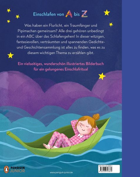 Was haben ein Flurlicht, ein Traumfänger und Pipimachen gemeinsam? Alle drei gehören unbedingt in ein ABC über das Schlafengehen! In dieser witzigen, verträumten, fantasievollen und spannenden Geschichten- und Gedichtesammlung des Wortkünstlers Martin Baltscheit ist alles zu finden, was es zu diesem wichtigen Thema zu sagen gibt. Die passenden Bilderwelten hat Anne-Kathrin Behl erschaffen, die mit dem Autor das ideale Kreativ-Gespann bildet.