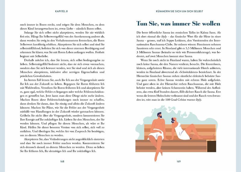 Mit einer einzigartigen Mischung aus persönlichen Geschichten, unterhaltsamen Anekdoten aus dem Alltag des glücklichsten Landes der Welt und neuesten wissenschaftlichen Erkenntnissen bietet Martela einen frischen Ansatz, das Leben zu genießen. Mit vielen hilfreichen Tipps und praktischen Impulsen führt der Ratgeber anschaulich durch einen persönlichen Entwicklungsprozess: Vom Ablegen hinderlicher Ego- und Erfolgserwartungen, über das Erlernen von Akzeptanz, bis hin zu einer neuen, sinnorientierten Lebensführung. Statt Glück zwanghaft zu jagen, lernen wir, im Hier und Jetzt zufrieden zu leben und ein erfüllteres Leben zu führen.