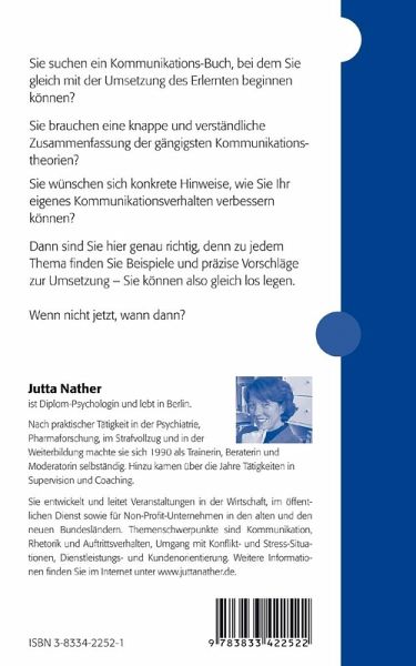 In diesem Buch finden Sie endlich konkrete Hinweise, wie Sie jeden Tag Ihre Kommunikation verbessern können. Hier sind praktikable Ansätze kurz und gut lesbar zusammengefasst. Bei jedem Abschnitt können Sie direkt mit der Umsetzung in Ihren Alltag beginnen - ohne Umwege über künstliche Übungs-Situationen. Interessierte Laien finden sich in diesem Buch genau so wieder wie Fachleute aus Kommunikation, Management und Training, denn: Wie will ich beispielsweise heikle Personalgespräche erfolgreich führen, wenn ich mich in der alltäglichen Kommunikation nicht sicher fühle? Dieses liebevoll gestaltete Buch ist ebenso lebendig wie fundiert. Sie werden Lust haben, es immer wieder in die Hand zu nehmen, denn Sie sehen darin Situationen wieder, die Sie aus Ihrem täglichen Leben kennen. Sie hören förmlich die beschriebenen Dialoge und merken, wie viel Spaß es machen kann, Kommunikation neu zu betrachten und einzusetzen. Zu jedem Thema finden Sie Beispiele und präzise Vorschläge zur Umsetzung - Sie können also gleich los legen.