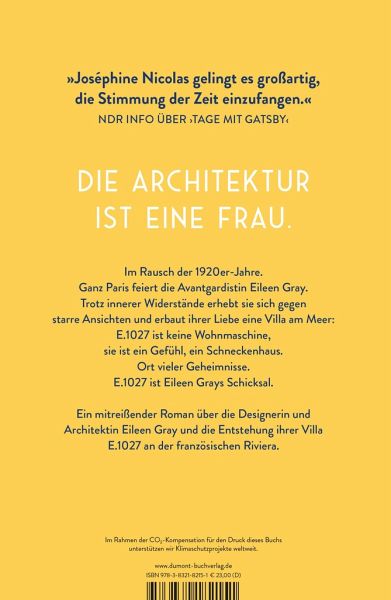 »Paris und seine Salons, der Kampf um künstlerische Anerkennung - all das vermengt Joséphine Nicolas zum faszinierenden Porträt einer Künstlerin.« Peter Twiehaus, ZDF-MORGENMAGAZIN »Christiane Adlung [hat] einen intensiven Roman geschrieben. Das liegt nicht nur an dem Leben und Denken [Eileen] Grays. [...] Es liegt auch an der sensiblen und wunderschönen Sprache der Autorin.« Maike Jacobs, NEUE PRESSE »Joséphine Nicolas setzt Eileen Grey mit ihrem fesselnden und poetischen Roman ein Denkmal.« Christiane von Korff, BÜCHERMAGAZIN »Wie ein Ritt durch die Architekturgeschichte der Moderne.« Welf Grombacher, SÜDKURIER »Beeindrucked!« Sigrid Lünnemann, DAS STADTMAGAZIN FÜR CLOPPENBURG & UMZU