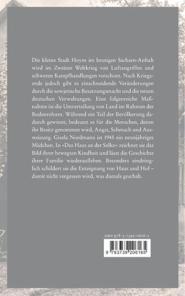 Die kleine Stadt Hoym im heutigen Sachsen-Anhalt wird im Zweiten Weltkrieg von Luftangriffen und schweren Kampfhandlungen verschont. Nach Kriegsende jedoch gibt es einschneidende Veränderungen durch die sowjetische Besatzungsmacht und die neuen deutschen Verwaltungen. Eine folgenreiche Maßnahme ist die Umverteilung von Land im Rahmen der Bodenreform. Während ein Teil der Bevölkerung dadurch gewinnt, bedeutet es für die Menschen, denen ihr Besitz genommen wird, Angst, Schmach und Ausweisung. Gisela Nordmann ist 1945 ein neunjähriges Mädchen. In "Das Haus an der Selke" zeichnet sie das Bild ihrer bewegten Kindheit und lässt die Geschichte ihrer Familie wiederaufleben. Besonders eindringlich schildert sie die Enteignung von Haus und Hof - damit nicht vergessen wird, was damals geschah.