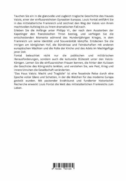 Tauchen Sie ein in die glanzvolle und zugleich tragische Geschichte des Hauses Valois, einer der einflussreichsten Dynastien Europas. Louis Fontal entführt Sie in das mittelalterliche Frankreich und zeichnet den Weg der Valois von ihrem machtvollen Aufstieg bis zu ihrem dramatischen Fall nach.Erleben Sie die Anfänge unter Philipp VI., der nach dem Aussterben der Kapetinger den französischen Thron bestieg, und verfolgen Sie die entscheidenden Momente während des Hundertjährigen Krieges, in dem Frankreich um seine Identität und Souveränität kämpfte. Entdecken Sie die Intrigen am königlichen Hof, die Bündnisse und Feindschaften mit anderen europäischen Mächten und die Rolle der Kirche und des Adels im Machtgefüge jener Zeit.Fontal beleuchtet nicht nur die politischen und militärischen Herausforderungen, sondern auch die kulturelle Blütezeit unter den Valois-Königen. Lernen Sie die einflussreichen Frauen kennen, die hinter den Kulissen die Geschicke des Königreichs lenkten, und verstehen Sie, wie Pest, Krieg und innere Unruhen die Gesellschaft veränderten."Das Haus Valois: Macht und Tragödie" ist eine fesselnde Reise durch eine Epoche voller Glanz und Schatten, in der die Weichen für das moderne Europa gestellt wurden. Mit packender Erzählkunst und fundierter historischer Recherche erweckt Louis Fontal die Welt des mittelalterlichen Frankreichs zum Leben.