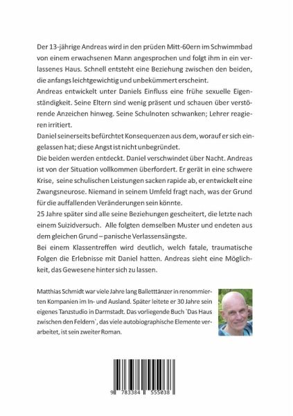 Matthias Schmidt war viele Jahre lang Balletttänzer in renommierten Kompanien im In- und Ausland. Später leitete er 30 Jahre sein eigenes Tanzstudio in Darmstadt. Das vorliegende Buch `Das Haus zwischen den Feldern`, das viele autobiographische Elemente verarbeitet, ist sein zweiter Roman.