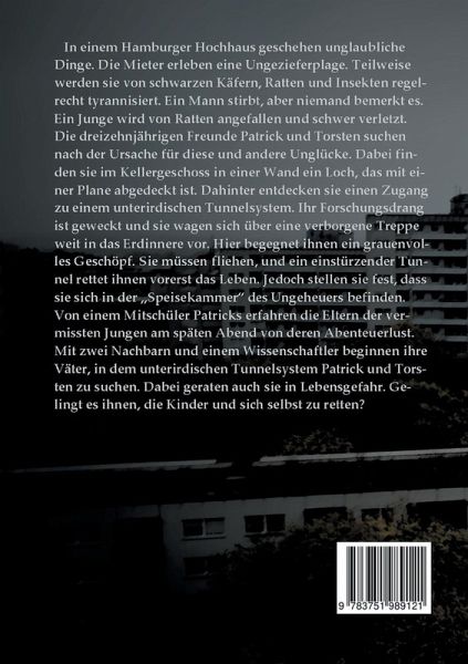 In einem Hamburger Hochhaus geschehen unglaubliche Dinge. Die Mieter erleben eine Ungezieferplage. Teilweise werden sie von schwarzen Käfern, Ratten und Insekten regelrecht tyrannisiert. Ein Mann stirbt, aber niemand bemerkt es. Ein Junge wird von Ratten angefallen und schwer verletzt. Die dreizehnjährigen Freunde Patrick und Torsten suchen nach der Ursache für diese und andere Unglücke. Dabei geraten sie in ein unterirdisches Tunnelsystem. Hier begegnet ihnen ein grauenvolles Geschöpf, das ihr Leben bedroht. Von einem Mitschüler Patricks erfahren die Eltern der vermissten Jungen von deren…mehr
