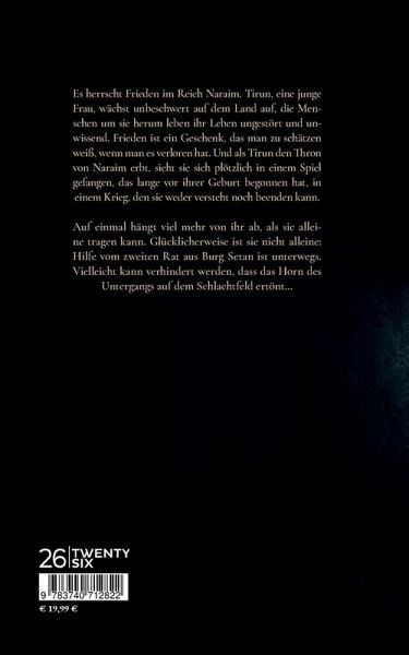 Es herrscht Frieden im Reich Naraim. Tirun wächst unbeschwert auf dem Land auf. Die Menschen um sie herum leben ihr Leben ungestört und unwissend. Frieden ist ein Geschenk, das man zu schätzen weiß, wenn man es verloren hat. Und als Tirun den Thron von Naraim erbt, sieht sie sich plötzlich in einem Spiel gefangen, das lange vor ihrer Geburt begonnen hat, in einem Krieg, den sie weder versteht noch beenden kann. Auf einmal hängt viel mehr von ihr ab, als sie alleine tragen kann. Glücklicherweise ist sie nicht alleine: Hilfe vom zweiten Rat aus Burg Setan ist unterwegs. Vielleicht kann verhindert werden, dass das Horn des Untergangs auf dem Schlachtfeld ertönt.....