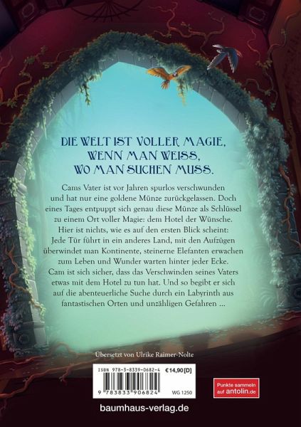 Cams Vater ist vor Jahren spurlos verschwunden und hat nur eine goldene Münze zurückgelassen. Cams Eintrittskarte zu einem Ort voller Magie: das Hotel der Wünsche. Hier ist nichts, wie es auf den ersten Blick scheint: Jede Tür führt in ein anderes Land, steinerne Elefanten erwachen zum Leben, und Wunder warten hinter jeder Ecke. Cam ist sich sicher, dass das Verschwinden seines Vaters etwas mit dem Hotel zu tun hat. Und so begibt er sich auf die abenteuerliche Suche in einem Labyrinth aus fantastischen Orten und unzähligen Gefahren ...