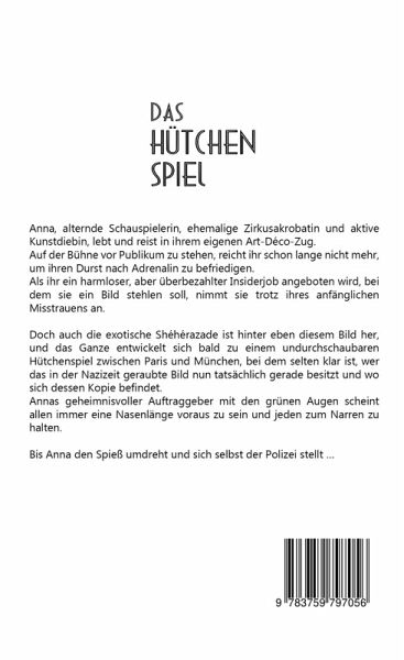 Ein gestohlenes Gemälde. Eine Diebin mit Gewissen. Ein Spiel um Wahrheit und Täuschung. Anna, einst gefeierte Schauspielerin und Akrobatin, reist in ihrem eigenen Art-Déco-Zug durch Europa - elegant, charmant, ruhelos. Auf der Bühne sucht sie längst kein Publikum mehr, sondern das Adrenalin. Als ihr ein lukrativer Auftrag angeboten wird, ein Bild zu stehlen, wittert sie ein harmloses Abenteuer. Doch bald entpuppt sich der Coup als Teil eines gefährlichen Spiels zwischen Paris und München - und sie ist nicht die Einzige, die das Bild will. Die rätselhafte Shéhérazade, ein Mann mit grünen Augen und eine Spur aus Lügen und Kopien führen Anna tief in eine Welt aus Täuschung und Erinnerung. Ein Krimi über Identität, Kunst und die Frage, wem Wahrheit eigentlich gehört.