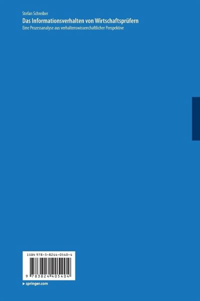 Stefan M. Schreiber untersucht Prüfungsprozesse, vor allem Jahresabschlussprüfungen, aus verhaltenswissenschaftlicher Perspektive. Er stützt sich dabei im wesentlichen auf die anglo-amerikanische Prüfungsforschung und nutzt als theoretischen Bezugsrahmen den Informationsverarbeitungsansatz der kognitiven Psychologie, der eine phasenspezifische Betrachtung des Informationsverhaltens von Prüfern impliziert. Außerdem wird mit der Expertise von Wirtschaftsprüfern ein personales Merkmal besonders berücksichtigt, welches das Informationsverhalten in zentraler Weise beeinflusst.