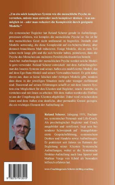 "Um ein solch komplexes System wie die menschliche Psyche zu verstehen, müsste man entweder noch komplexer denken - was unmöglich ist - oder man reduziert die Komplexität durch geeignete Modelle."Als systemischer Begleiter hat Roland Scherer erfahren, wie komplex die menschliche Psyche ist. Sie ist für den menschlichen Geist nicht umfassend zu begreifen. Deshalb sind Modelle notwendig, die diese Komplexität auf ein beherrschbares, aber dennoch brauchbares Maß reduzieren. Einige Modelle postulieren, dass die Psyche des Menschen aus mehreren Persönlichkeitsanteilen besteht. Es gibt diese Modelle zum Teil schon recht lange und sie haben sich bewährt.Auch bei Aufstellungen der Psyche werden solche Modelle gern verwendet. Roland Scherer entwickelt mit dem Aufstellungsformat des Inneren Systems ein modifiziertes Modell, das auf dem Ego-State-Modell und seinen Verwandten basiert. Er geht dabei davon aus, dass es keine falschen oder richtigen Modelle gibt, sondern dass diese in der jeweiligen Situation mehr oder weniger zielführend sind. Basierend auf seinen Erfahrungen schafft er mit dem Inneren System eine Möglichkeit für den Klienten und Begleiter, innere Antriebe zu verstehen und mit ihnen zu arbeiten. Mit dem Außen werden die Einflüsse aus der Umgebung des Klienten abgebildet. Dabei wird zwischen dem Innen und dem Außen eine deutliche, aber permeable Grenze gezogen.