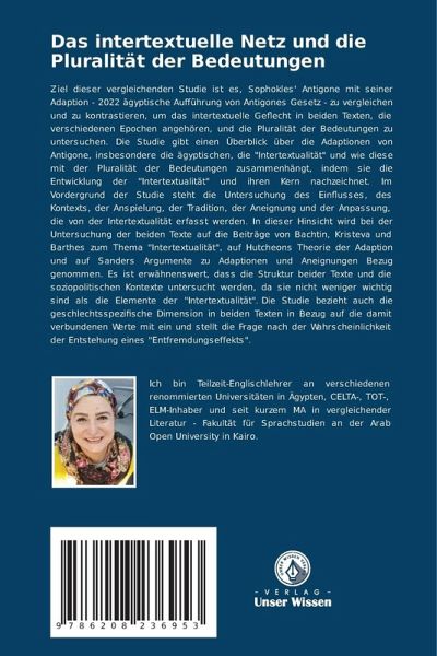 Ziel dieser vergleichenden Studie ist es, Sophokles' Antigone mit seiner Adaption - 2022 ägyptische Aufführung von Antigones Gesetz - zu vergleichen und zu kontrastieren, um das intertextuelle Geflecht in beiden Texten, die verschiedenen Epochen angehören, und die Pluralität der Bedeutungen zu untersuchen. Die Studie gibt einen Überblick über die Adaptionen von Antigone, insbesondere die ägyptischen, die "Intertextualität" und wie diese mit der Pluralität der Bedeutungen zusammenhängt, indem sie die Entwicklung der "Intertextualität" und ihren Kern nachzeichnet. Im Vordergrund der Studie steht die Untersuchung des Einflusses, des Kontexts, der Anspielung, der Tradition, der Aneignung und der Anpassung, die von der Intertextualität erfasst werden. In dieser Hinsicht wird bei der Untersuchung der beiden Texte auf die Beiträge von Bachtin, Kristeva und Barthes zum Thema "Intertextualität", auf Hutcheons Theorie der Adaption und auf Sanders Argumente zu Adaptionen und Aneignungen Bezug genommen. Es ist erwähnenswert, dass die Struktur beider Texte und die soziopolitischen Kontexte untersucht werden, da sie nicht weniger wichtig sind als die Elemente der "Intertextualität". Die Studie bezieht auch die geschlechtsspezifische Dimension in beiden Texten in Bezug auf die damit verbundenen Werte mit ein und stellt die Frage nach der Wahrscheinlichkeit der Entstehung eines "Entfremdungseffekts".