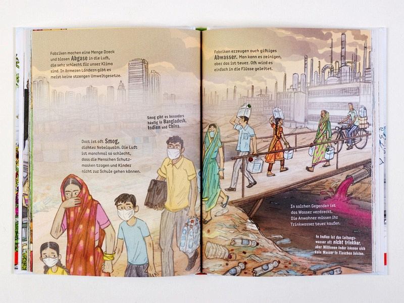 Die Erde ächzt unter uns Menschen. Wir fällen, buddeln, verdrecken, wir kaufen, verbrauchen, reisen, blasen Abgas in die Luft... STOPP! So können wir nicht weitermachen! Gerade Kinder spüren das ganz genau. Doch wie soll unsere Zukunft aussehen? Und warum fällt Veränderung so schwer? Diesen Fragen geht Gerda Raidt in vielen Bildern und knappen Texten nach. Dabei deckt sie auf, welche globalen Verstrickungen hinter unserem Essen, unserem Konsum, unserem Verkehr und unserer Energiegewinnung stecken. Das Verblüffende: Alles hängt mit allem zusammen! Gerda Raidt macht das Komplexe für Kinder konkret und bezieht sie aktiv ein in die Frage Wie wollen wir leben? Die Vielfalt in Natur und Gesellschaft! Für Kinder erklärt. Wichtige Themen unserer Zeit - anschaulich erklärt und lebendig illustriertUmweltfreundliche Ausstattung, u. a. durch 100 % Recyclingpapier, Öko-Druckfarben und Verzicht auf Folienkaschierung. Produziert in Deutschland!Auch Erwachsene lernen hier noch etwas.