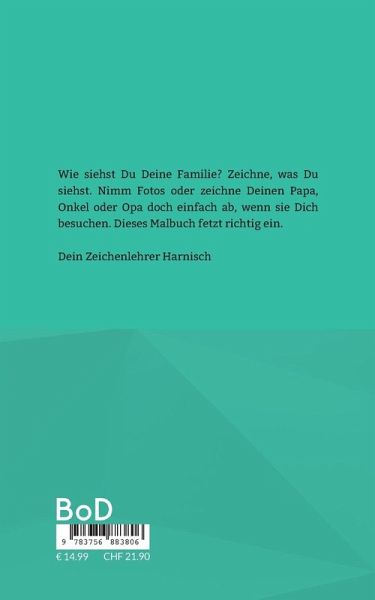 Wie siehst Du Deine Familie? Zeichne, was Du siehst. Nimm Fotos oder zeichne Deinen Papa, Onkel oder Opa doch einfach ab, wenn sie Dich besuchen. Dieses Malbuch fetzt richtig ein. Dein Zeichenlehrer Harnisch