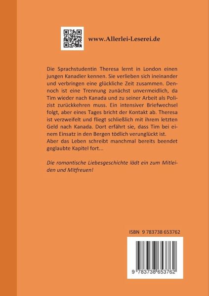 Die Sprachstudentin Theresa lernt in London einen jungen Kanadier kennen. Beide verlieben sich ineinander und verbringen eine glückliche Zeit zusammen. Dennoch ist eine Trennung zunächst unvermeidlich, da Tim wieder nach Kanada und zu seiner Arbeit als Polizist zurückkehren muss. Ein intensiver Briefwechsel folgt, aber eines Tages bricht der Kontakt ab. Theresa ist verzweifelt und fliegt schließlich mit ihrem letzten Geld nach Kanada. Dort erfährt sie, dass Tim bei einem Einsatz in den Bergen tödlich verunglückt ist. Aber das Leben schreibt manchmal bereits beendet geglaubte Kapitel fort...Die romantische Liebesgeschichte lädt ein zum Mitleiden und Mitfreuen!