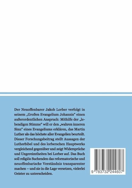 Der Neuoffenbarer Jakob Lorber verfolgt in seinem "Großen Evangelium Johannis" einen außerordentlichen Anspruch: Mithilfe der "lebendigen Stimme" will er den "wahren inneren Sinn" eines Evangeliums erklären, das Martin Luther als das höchste aller Evangelien beurteilt. Dieser Forschungsbeitrag stellt Aussagen der Lutherbibel und des lorberschen Hauptwerks vergleichend gegenüber und zeigt Widersprüche und Ungereimtheiten bei Lorber auf. Das Buch soll religiös Suchenden das reformatorische und neuoffenbarische Verständnis transparenter machen - und sie in der Lage versetzen, vielerlei Geister zu unterscheiden.
