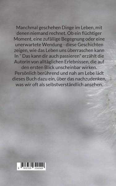 "Das kann dir auch passieren"- Dieser Titel beschreibt nicht nur die Essenz der Geschichten in diesem Buch, sondern auch den Weg, den ich selbst in meinem Leben gegangen bin. In den Erzählungen, die hier versammelt sind, spiegelt sich mein persönlicher Blick auf die Welt wider, geprägt von vielen Orten, Menschen und Erlebnissen. Überall fand ich Geschichten, die darauf warten, erzählt zu werden. Das Schreiben war für mich immer mehr als nur eine Leidenschaft, es war ein Weg, die Welt zu verstehen, meine Gedanken zu ordnen und Momente einzufangen, die andernfalls unbemerkt geblieben wären. Oft sind es die kleinen, unscheinbaren Begebenheiten, die in ihrer Tiefe und Vielschichtigkeit das Leben ausmachen. Diese Augenblicke, manchmal still, manchmal überraschend, habe ich in diesen Kurz(e)geschichten versucht, in Worte zu fassen. Jede von ihnen hier trägt ein Stück von mir, aber auch ein Stück von der Welt, die mich geprägt hat, in der ich gelebt habe oder lebe. Ich lade euch ein, in diese Geschichten einzutauchen, euch von den Momenten berühren zu lassen und vielleicht das ein oder andere über das Leben und sich selbst zu entdecken.