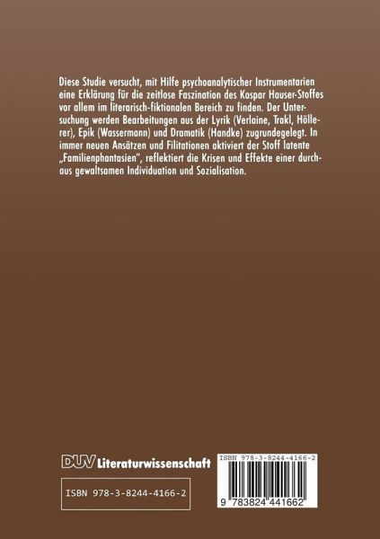 Diese Studie weicht nur geringftigig von der im Jahre 1992 an der Universitat-Ge samthochschule Siegen eingereichten Dissertation abo Danken mochte ich an dieser Stelle all meinen Freunden und Bekannten, insbe sondere Prof. Dr. Peter Gendolla und Dr. Ursula Bohmer ffir ihre wohlwollende Begleitung und die stets anregende Kritik. Ffir die finanzielle Unterstiitzung danke ich dem Land Nordrhein-Westfalen, das mir ein zweijiihriges Promotionsstipendium gewiihrt hat, sowie meinen Eltern, die mir mein Studium ermoglicht haben. InhaItsverzeichnis 1. Einleitung . . . . . . 9 2. Forschungsbericht . . . . . . . . . . . . . . . . . . . . . . . 16 3. Der historische Kaspar Hauser-Fall 25 3. 1. Zur ratselhaften Herkunft Kaspar Hausers 30 3. 1. 1 Zur Kerkertheorie . 30 3. 1. 2 Zur Prinzentheorie . . . . . . . 31 4. Ursachen fUr die Legendenbildung . 33 4. 1. Der historische Kontext . . . . 33 4. 2. Die Prinzen- und Kerkerlegende 35 4. 3. Der literarhistorische und motivgeschichtliche Hintergrund 38 4. 4. Die Diskussion urn den menschlichen Naturzustand 41 49 5. Kaspar Hauser in der Lyrik . . . . . . . . . 5. 1. "De Ja musique avant toute chose" . . 52 5. 1. 1 Die "semiotische chora" bei Verlaine 64 5. 1. 2 Die Nachdichtungen und Ubersetzungen der Verlaineschen Vorlage. 71 5. 2. "Ich werde endlich doch immer ein armer Kaspar Hauser bleiben". 78 5. 2. 1 Die "semiotische chora" bei Trakl . . . . . . . . . 83 5. 3. Walter Hallerer . . . . . . . . . . . . . . . . . . . . 91 5. 3. 1 Hallerers Poetik und Kristevas Semiotiktheorie 96 5. 3. 2 Die "semiotische chora" bei HaUerer 99 6. Kaspar Hauser irn Roman . . . . . . . . . . . 110 6. 1. Methodische Zwischenilberlegungen . 110 6. 2. Der Roman Wassermanns als odipales Drama . 113 6. 2. 1 Der Familienroman . . . . . . . . . . . . . . .