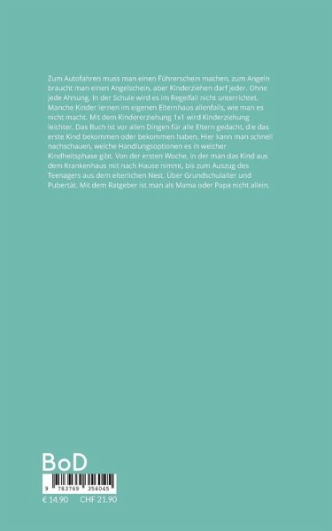 Zum Autofahren muss man einen Führerschein machen, zum Angeln braucht man einen Angelschein, aber Kinderziehen darf jeder. Ohne jede Ahnung. In der Schule wird es im Regelfall nicht unterrichtet. Manche Kinder lernen im eigenen Elternhaus allenfalls, wie man es nicht macht. Mit dem Kindererziehung 1x1 wird Kinderziehung leichter. Das Buch ist vor allen Dingen für alle Eltern gedacht, die das erste Kind bekommen oder bekommen haben. Hier kann man schnell nachschauen, welche Handlungsoptionen es in welcher Kindheitsphase gibt. Von der ersten Woche, in der man das Kind aus dem Krankenhaus mit nach Hause nimmt, bis zum Auszug des Teenagers aus dem elterlichen Nest. Über Grundschulalter und Pubertät. Mit dem Ratgeber ist man als Mama oder Papa nicht allein. Ein schönes Geschenk zur Geburt. Das Buch gibt humorvoll Rat für (nahezu) alle Eltern-Situationen: Von der Stillfrage bis zum Umgang mit einem schreienden Kind.