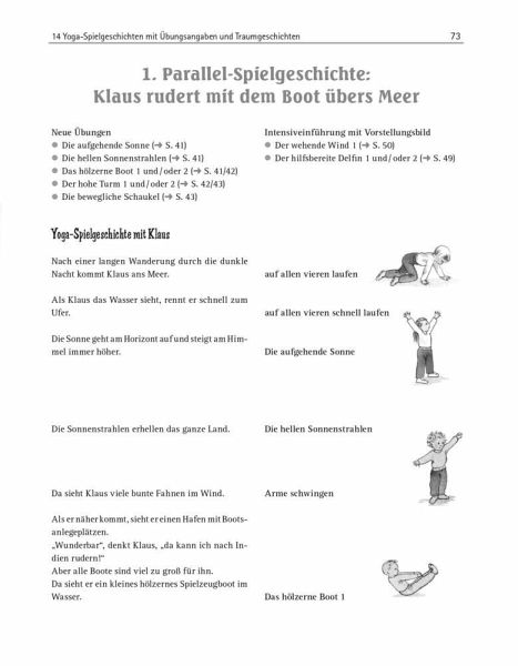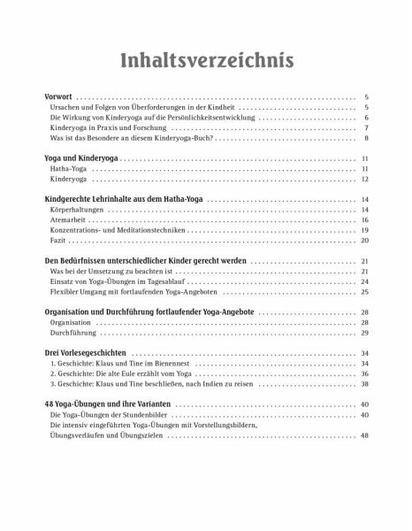Beim Kinderyoga steht das spielerische Lernen und die Freude an der Bewegung im Vordergrund. Im Wechsel mit Ruhe- und Entspannungsübungen wirkt Yoga ausgleichend und fördert Konzentration und Kreativität. In diesem Buch finden sich 48 Yoga-Übungen und Varianten mit Anleitungen und Wirkungsbeschreibungen für Kinder von 4-10 Jahren. Gemeinsam mit den beiden kindgerechten Identifikationsfiguren Maus und Biene erleben die Kinder viele spannende Spielgeschichten. Die Yoga-Übungen lassen sich flexibel einzeln oder in Kombination im Tagesablauf einsetzen, individuell an den Interessen der Kinder ausgerichtet. Pädagogische Informationen über Kinderyoga, die Planung fortlaufender Angebote und ein Plakat mit 48 ausgewählten Yoga-Übungen runden das Buch ab.