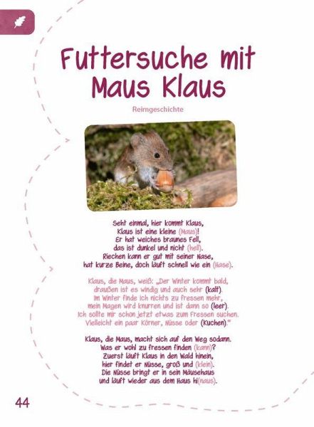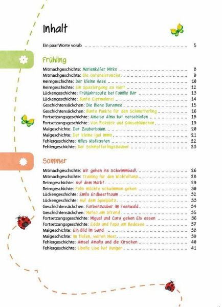 Gemeinsam auf eine sprachbildende Entdeckungsreise!Spannende Geschichten und fantasievolle Welten warten darauf, von den Kindern entdeckt zu werden. Mit diesem Buch lassen die Kinder Geschichten lebendig werden und entfalten so ihre Sprachfähigkeiten spielerisch. Es bietet zahlreiche Anregungen zum Mitmachen, Staunen und Lernen, und motiviert die Kinder dazu, kreativ zu denken und zu gestalten. Die vielfältigen Geschichten sind ideal, um die Sprachfreude zu wecken und zu vertiefen.- Frühling: Begleiten Sie den Marienkäfer Mirko und die Ameise Alma auf ihren aufregenden Abenteuern und lernen Sie gemeinsam, welche Wunder die Natur im Frühling bereithält.- Sommer: Gehen Sie mit Mateo an den Strand und entdecken Sie, wie viel Spaß das Spielen am Wasser macht oder malen Sie gemeinsam mit den Kinder Bilder in den Sand.- Herbst: Helfen Sie der Maus Klaus bei ihrer Futtersuche oder hüpfen Sie mit dem kleinen Bären in die Pfützen im Herbstwald.- Winter: Verteilen Sie mit dem Weihnachtsmann Geschenke und begleiten Sie den Siebenschläfer Sid im Winterwald.Die Kinder erweitern nicht nur ihren Wortschatz, sondern stärken auch ihre sozialen Fähigkeiten. Sie lernen, Gedanken und Gefühle auszudrücken, und erleben, wie viel Freude das gemeinsame Geschichtenerzählen bereiten kann. Dabei dürfen Lachen und Staunen natürlich nicht fehlen, während sie die Welt der Sprache und Fantasie erkunden.Erleben Sie, wie viel Freude das Spielen mit Sprache und Geschichten bereitet!