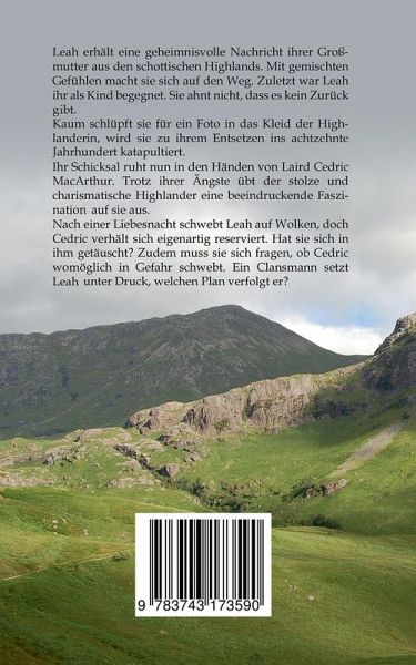 Leah erhält eine geheimnisvolle Nachricht ihrer Großmutter aus den schottischen Highlands. Mit gemischten Gefühlen macht sie sich auf den Weg. Zuletzt war Leah ihr als Kind begegnet. Sie ahnt nicht, dass es kein Zurück gibt. Kaum schlüpft sie für ein Foto in das Kleid der Highlanderin, wird sie zu ihrem Entsetzen ins achtzehnte Jahrhundert katapultiert.Ihr Schicksal ruht nun in den Händen von Laird Cedric MacArthur. Trotz ihrer Ängste übt der stolze und charismatische Highlander eine beeindruckende Faszination auf sie aus.Nach einer Liebesnacht schwebt Leah auf Wolken, doch Cedric verhält sich eigenartig reserviert. Hat sie sich in ihm getäuscht? Zudem muss sie sich fragen, ob Cedric womöglich in Gefahr schwebt. Ein Clansmann setzt Leah unter Druck, welchen Plan verfolgt er?
