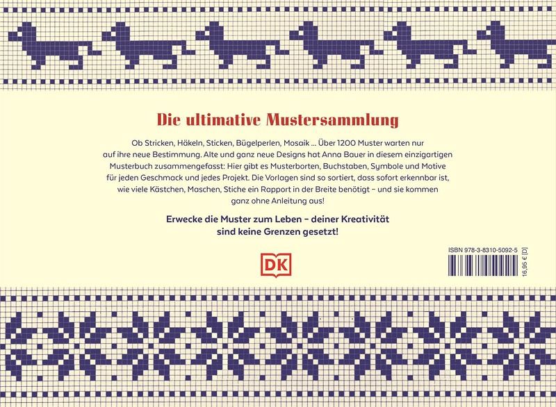 In diesem Buch warten über 1000 Inspirationen für deine kreativen Projekte auf dich. Egal ob Stricken, Häkeln, Kreuzstich, Bügelperlen oder Mosaik: Hier findest du Musterborten, Buchstaben, Symbole und Motive für jeden Geschmack und jedes Projekt. Durch deine individuelle Farbauswahl kannst du die fantastischen Muster dann ganz nach deinem Geschmack zum Leben erwecken. Besonders praktisch: Die Muster sind so sortiert, dass sofort erkennbar ist, wie viele Kästchen/Maschen/Stiche ein Rapport benötigt - damit das jeweilige Muster dann auch ideal zu deinem Projekt passt. Wie wäre es zum Beispiel mit einem Bügelperlenuntersetzer mit Krabbe und Seepferchen oder einem Statement-Pulli mit Totenkopf?