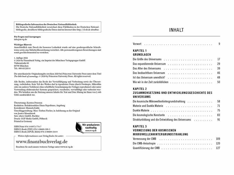 Das kleine Buch der Kosmologie bietet einen atemberaubenden Blick auf unser Universum in den größten nur vorstellbaren Dimensionen. Packend geschrieben von einem der weltweit führenden experimentellen Kosmologen, Lyman Page, beschreibt es, was Wissenschaftler durch präzise Messungen des schwachen thermischen Nachleuchtens des Urknalls - bekannt als kosmische Mikrowellenhintergrundstrahlung (CMB) - aufdecken und wie ihre Erkenntnisse unsere Sicht auf den Kosmos verändern. Page erklärt nicht nur die Basics der Kosmologie sowie aktuelle Beobachtungen, sondern beschreibt auch, wie diese zu einem einheitlichen Bild verwoben werden können, um das Standardmodell der Kosmologie zu bilden. Dieses prägnante Buch beschreibt auch die Suche nach immer tieferen Erkenntnissen an den Grenzen des Fachgebiets - von der Suche nach der Natur der Neutrinos und der dunklen Energie bis hin zur Erforschung der Physik des frühen Universums. Die kürzeste Geschichte der Kosmologie im Westentaschenformat.