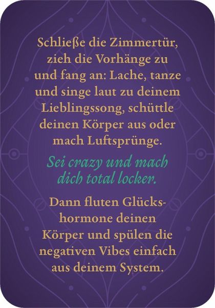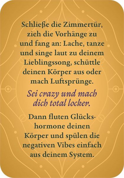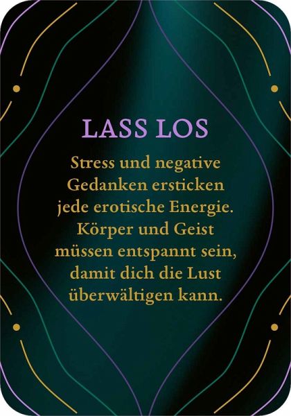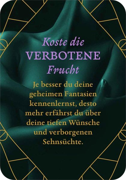 Dieses Kartenset lädt dazu ein, auf eine spielerische und ungezwungene Entdeckungsreise zu gehen. Jede der 50 Karten enthält stilvolle Zeilen zu erotischen und romantischen Themen sowie einfach umsetzbare Anregungen. Die kurzen Texte regen die Fantasie an und schenken unvergessliche Augenblicke, in denen alle Hemmungen fallen gelassen werden dürfen. Alles darf, nichts muss. Einfach eine Karte ziehen und sich überraschen lassen, welche Inspiration darauf wartet!