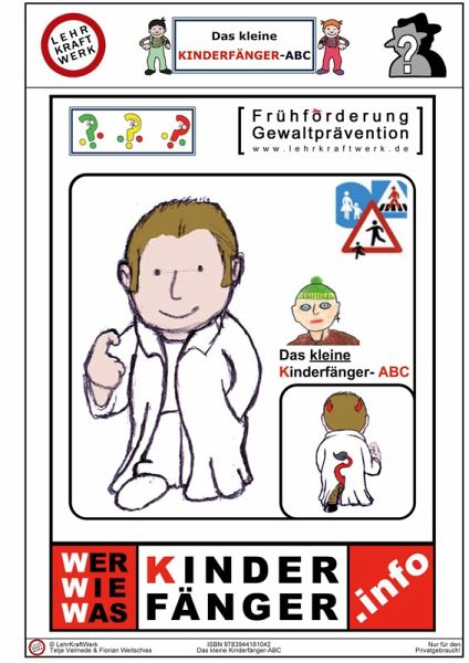 "Es geht um das, was manche Erwachsene manchen Kindern antun können. Es ist absolut nicht schön, aber meistens unsichtbar. Deswegen fangen wir beide jetzt mit dem kleinen Kinderfänger-ABC an. Denn wir müssen auch einmal deutlich und verständlich darüber sprechen. Das ist wichtig." Das kleine Kinderfänger-ABC widmet sich als thematische Einführung vorrangig dem Fremdtäter und bietet noch keinen Platz für Berührungen. Durch das gemeinsame Bearbeiten und Ausmalen der Fragestellungen beantworten die Kinder und Eltern gemeinsam die notwendigen Fragestellungen für "Anfänger". www.kinderfänger.info
