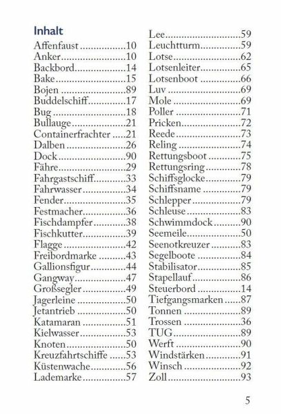 An der Küste gibt es stets eine Fülle von Aktivitäten, die die Aufmerksamkeit der "Seh"-Leute auf sich ziehen. Die Vielfalt der Schiffe, Bauwerke und Symbole wirft oft Fragen auf, besonders bei Besuchern ohne maritime Erfahrung. Dieses kleine Büchlein soll einige dieser Fragen beantworten und unter anderem seemännische Begriffe erklären sowie Einblicke in Schiffe und ihre Umgebung bieten