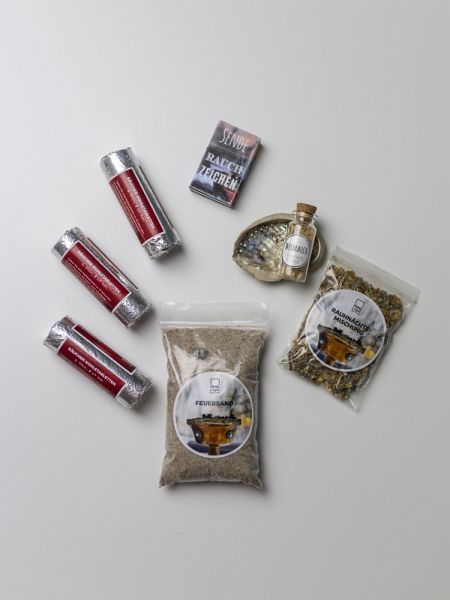 Du möchtest das mit dem Räuchern in Rauhnächten einfach mal ausprobieren?Dann ist dieses kleine Rauhnächte Set genau das Richtige für dich!Neben Räucherkohle, Sand und einer kleiner Räuchermuschel sind im Set ein Gläschen Weihrauch und eine Rauhnächte-Kompett-Mischung enthalten - diese ist universal und kann in der gesamten Rauhnachtszeit geräuchert werden.Die Hauptbestandteile darin sind: Weihrauch, Fichtenharz, Beifuss, Johanniskraut, Kamille, Königskerze, Schafgarbe, Angelikawurzel, Lavendel, Salbei, Alant, Wacholder.Im Set findest du auch eine kurze Erklärung zum Räuchern.