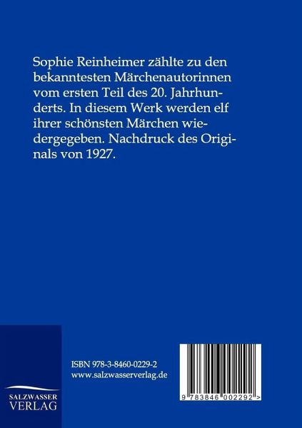 Sophie Reinheimer zählte zu den bekanntesten Märchenautorinnen vom ersten Teil des 20. Jahrhunderts. In diesem Werk werden elf ihrer schönsten Märchen wiedergegeben.
