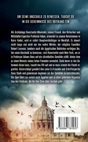 Darunter der wahre Mörder des Professors. Konstantin weiß, dass er aus der Sache nur herauskommt,…mehrKonstantin soll einen Historiker aus New York ermordet haben! Zumindest soll es so aussehen. Tatsächlich war der Tote aber ein enger Freund des Archäologen und befand sich auf einer unbekannten Mission in Kairo. Nun heißt es für Konstantin untertauchen, denn alle Welt ist plötzlich hinter ihm her. Darunter der wahre Mörder des Professors. Konstantin weiß, dass er aus der Sache nur herauskommt, wenn er seine Unschuld beweist. Aus diesem Grund reist er in die USA, um im Haus des Historikers nach Hinweisen zu suchen, wo er ein rätselhaftes Gemälde findet. Doch auch im Land der unbegrenzten Möglichkeiten wird nach ihm gefahndet, daher versteckt er sich bei der Schriftexpertin Ilana. Letztlich versuchen sie gemeinsam die verschlüsselten Botschaften zu knacken, wobei sie Hinweisen nachgehen müssen, die direkt in den Vatikan zu führen scheinen; zu einer Abordnung, der alle Mittel recht sind, das Gesicht des Vatikans zu wahren.