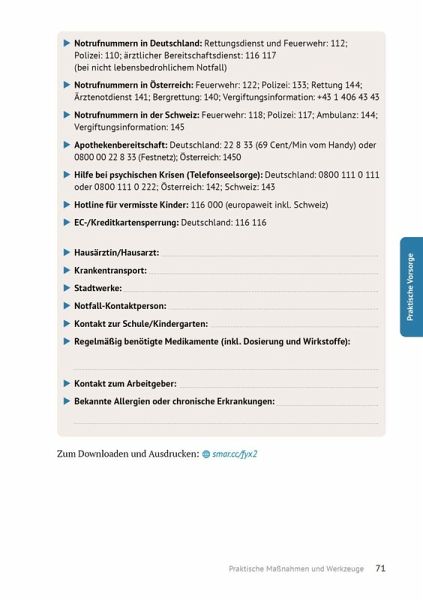 Checklisten und Leitfäden für vieleSzenarien: Die richtigen Vorgehensweisen helfen dir, vor, während und nach bestimmten Krisenfällen einen kühlen Kopf zu bewahren. Alle wichtigen Informationen, Anlaufstellen und Lösungen haben wir in diesem Buch für dich zusammengestellt.