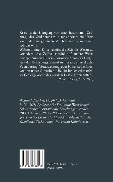 Krise ist der Übergang von einer bestimmten Ordnung des Verdichtens zu einer anderen; ein Übergang, der an gewissen Zeichen und Symptomen spürbar wird. Während einer Krise scheint die Zeit ihr Wesen zu verändern; die Zeitdauer wird auf andere Weise wahrgenommen als beim normalen Stand der Dinge; statt den Beharrungszustand zu messen, misst die die Veränderung. Voraussetzung jeder Krise ist die Intervention neuer Ursachen, die ein labiles oder stabiles Gleichgewicht, das vor dem Bestand, erschüttern. Paul Valery (1871-1945)