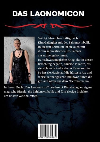 Seit 25 Jahren beschäftigt sich Kim Gallagher mit der Zahlensymbolik. In diesem Zeitraum ist sie auch mit ihrem satanistischen Ex-Partner zusammengekommen. Der schwarzmagische Krieg, der in dieser Beziehung begann, dauerte 21 Jahre, bis sie sich vollständig davon lösen konnte. So hat sie Magie auf die härteste Art und Weise kennengelernt und zwar durch die grossen Alten aus dem Necronomicum. In ihrem Buch "Das Laonomicon" beschreibt Kim Gallagher eigene magische Rituale, die Zahlensymbolik und fünf riesige Projekte, um unsere Welt zu retten.