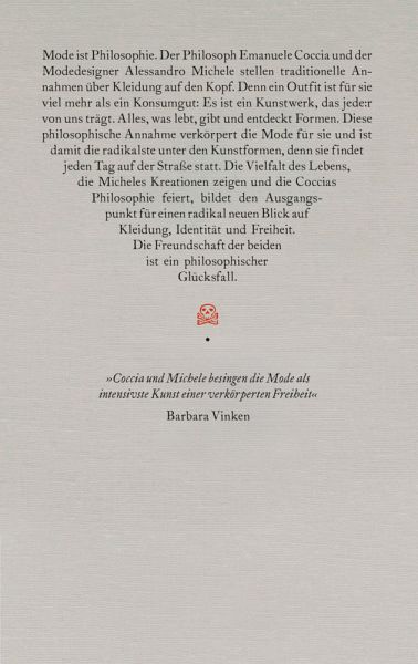 "Coccia und Michele besingen die Mode als intensivste Kunst einer verkörperten Freiheit." Barbara VinkenMode ist Philosophie. Star-Philosoph Emanuele Coccia und Mode-Ikone Alessandro Michele stellen traditionelle Annahmen über Kleidung auf den Kopf. Denn ein Outfit ist für sie viel mehr als ein Konsumgut: Es ist ein Kunstwerk, das jede:r von uns trägt. Alles, was lebt, gibt und entdeckt Formen. Diese philosophische Annahme verkörpert die Mode für sie und ist damit die radikalste unter den Kunstformen, denn sie findet jeden Tag auf der Straße statt. Die Vielfalt des Lebens, die Micheles Kreationen zeigen und die Coccias Philosophie feiert, bildet den Ausgangspunkt für einen radikal neuen Blick auf Kleidung, Identität und Freiheit. Die Freundschaft der beiden ist ein philosophischer Glücksfall.