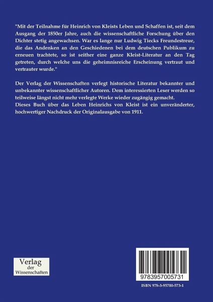 Dieses Buch über das Leben Heinrichs von Kleist ist ein unveränderter, hochwertiger Nachdruck der Originalausgabe von 1911.