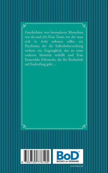 Jeder Mensch, der uns interessant erscheint, hat eine Vergangenheit, die ihn zu dem gemacht hat, was er ist. Und so wird Alltägliches zu etwas Besonderem. Regen folgt Sonnenschein und das Leben wird bunt. Die Geschichten handeln von besonderen Menschen wie du und ich: Eine Tante, vor der man sich in Acht nehmen sollte; ein Psychiater, der die Selbstbeherrschung verliert; ein Zugunglück, das zu einer anderen Identität verhilft und Frau Esmeralda Eifersucht, die für Beelzebub auf Seelenfang geht ...