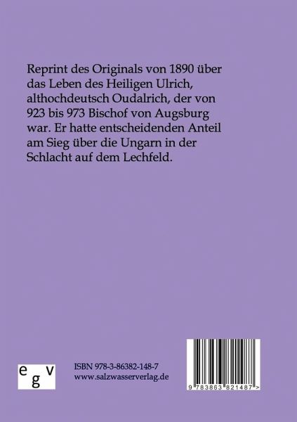 Reprint des Originals von 1890 über das Leben des Bischofs Oudalrich